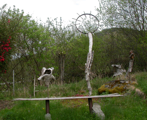 verschiedenen Materialien, vorzugsweise Hölzern, Wurzeln,
